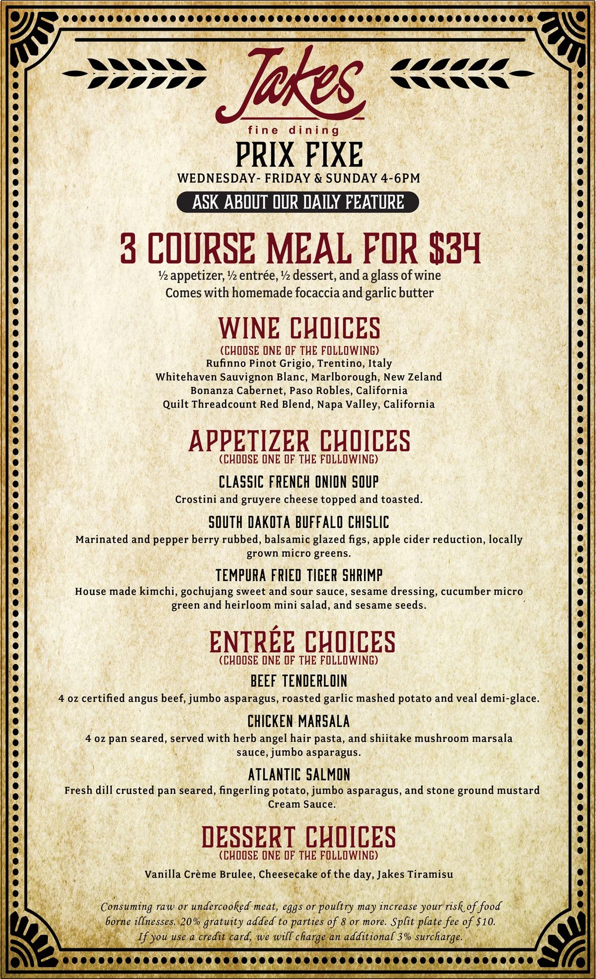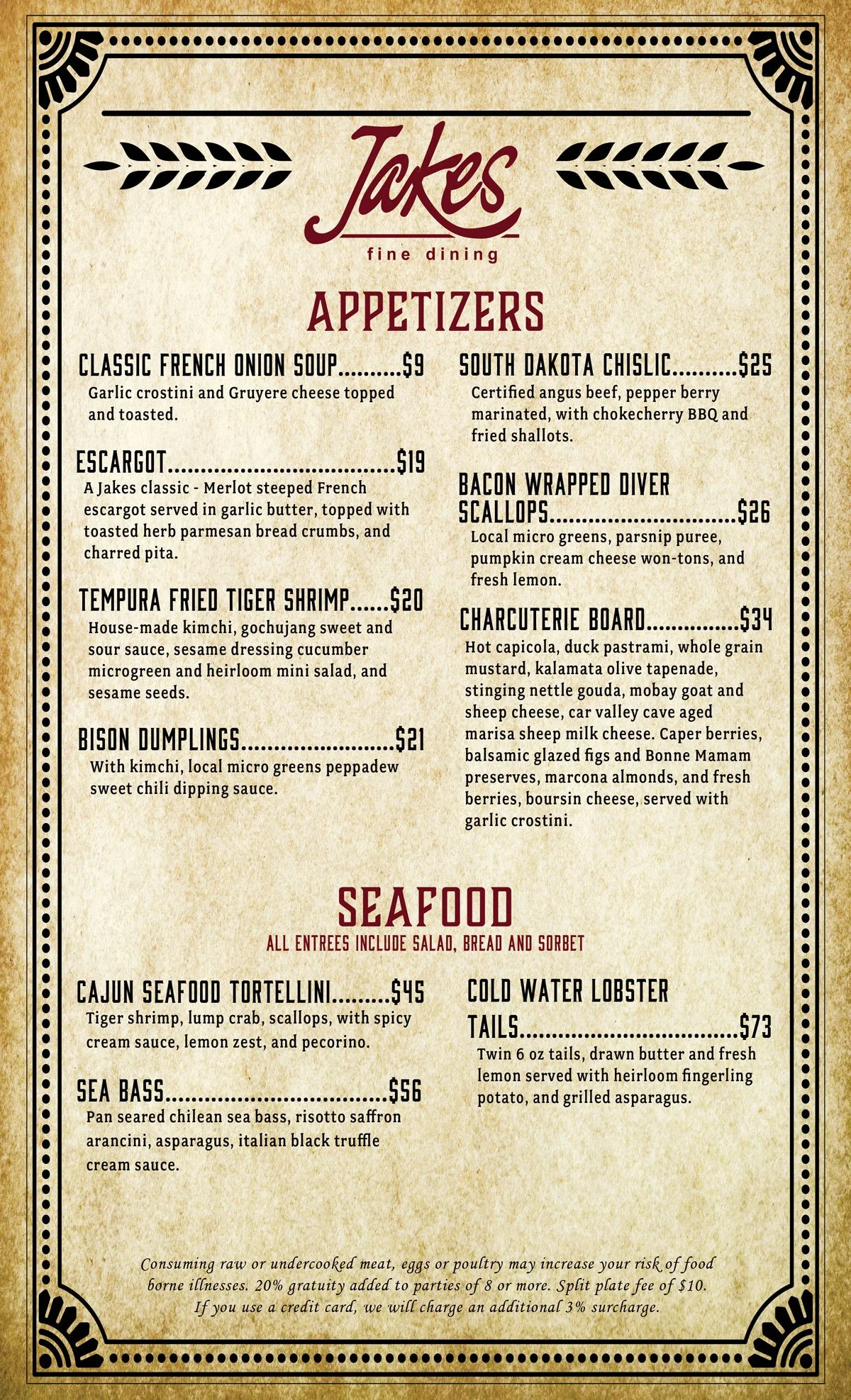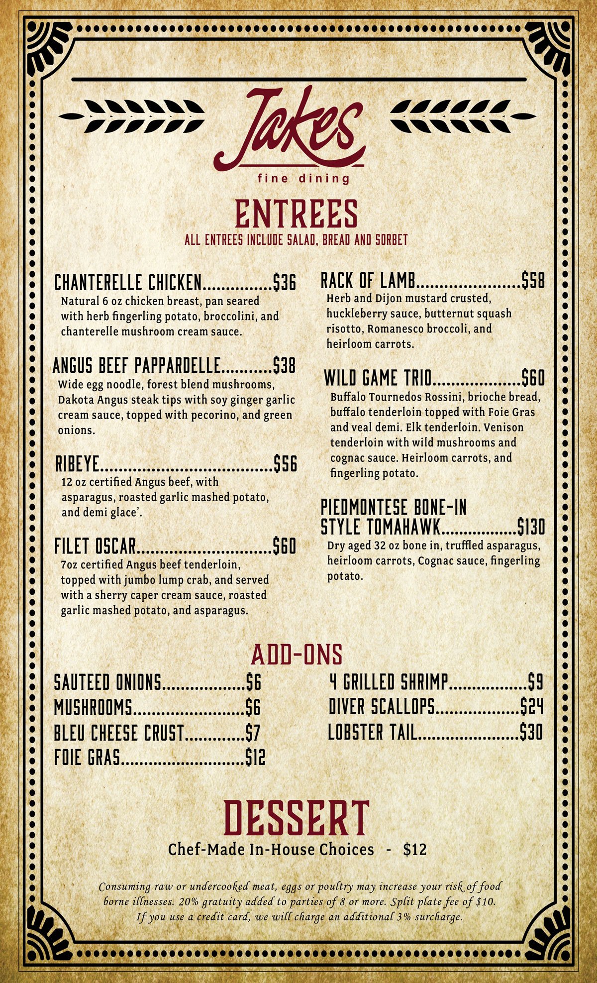 Jakes Fine Dining, atop the Midnight Star is set in an elegant fine dining atmosphere, complete with a skylight and stunning views of Deadwood. Start the night with an appetizer such as Escargot or one of Jakes specialty handcrafted cocktails. Pair your entree with a glass or bottle of wine. Finish the evening with a house-made Chef inspired dessert or an after-dinner drink. Whatever you choose will be fabulous as we only use the highest quality ingredients and create everything in-house! Exceptional service will complete the ultimate dining experience in Deadwood, SD.